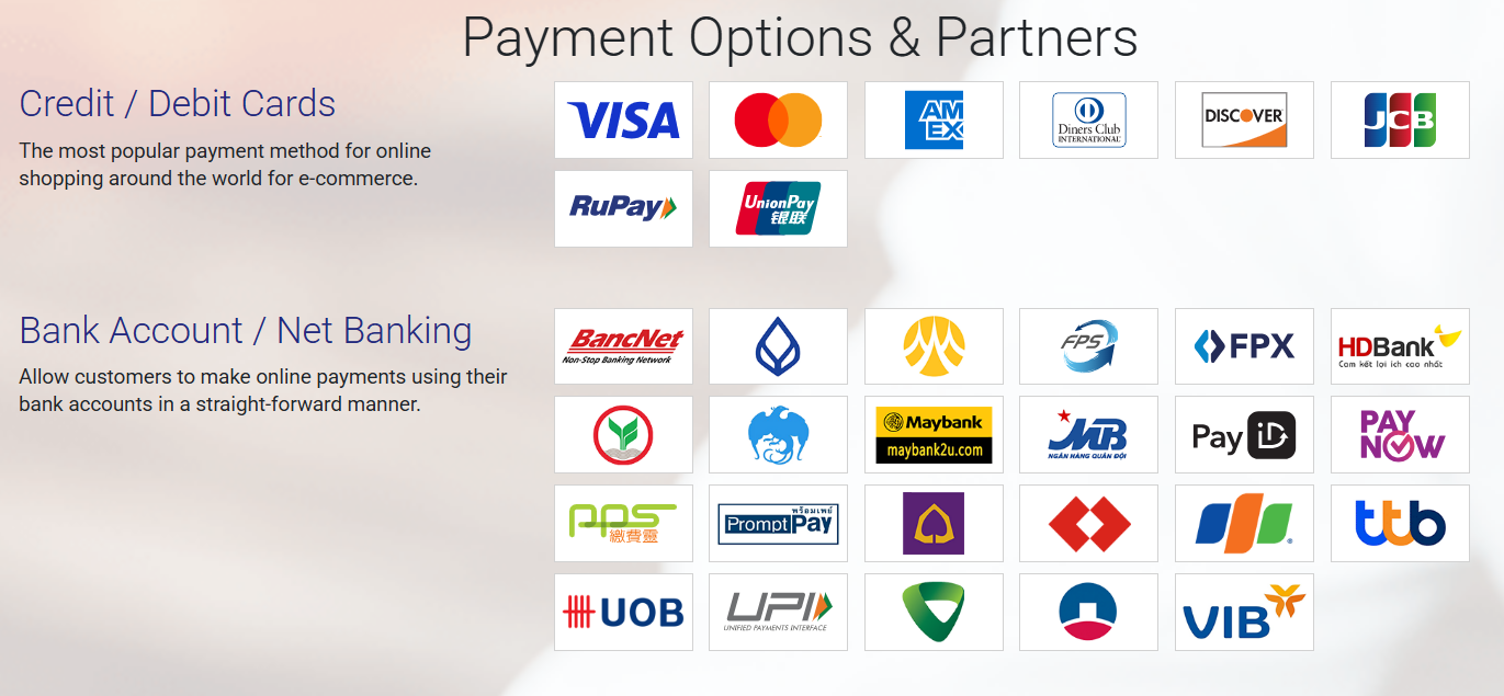 - Accept Visa, Mastercard, UnionPay, JCB, and AMEX