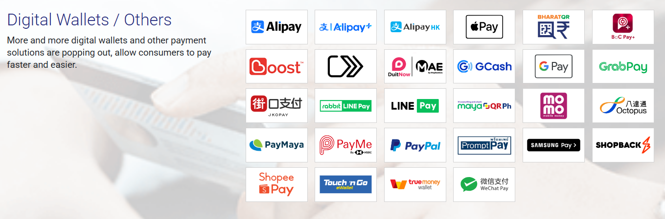 - Enable popular Asian wallets like WeChat Pay and Alipay